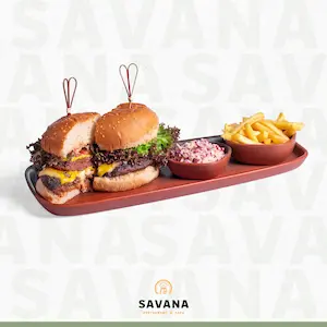 200 گرم گوشت گوساله، پنیر کبابی هالومی، گوجه، خیارشور، کاهو فرانسه، سالاد کلم، سیب زمینی