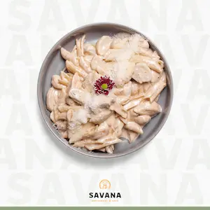 200 گرم فیله مرغ، پنه، قارچ، پنیر پارمسان، سس آلفردو