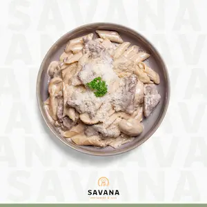 200 گرم فیله گوساله، پنه، قارچ، پنیر پارمسان، سس آلفردو